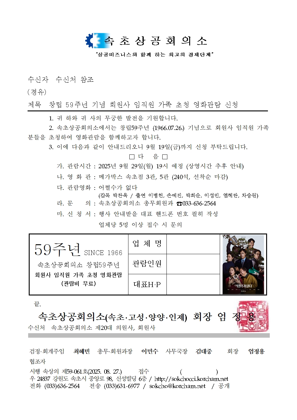 ‒ | 창립 59주년 회원사 임직원 가족 초청 영화관람 행사 안내 |
